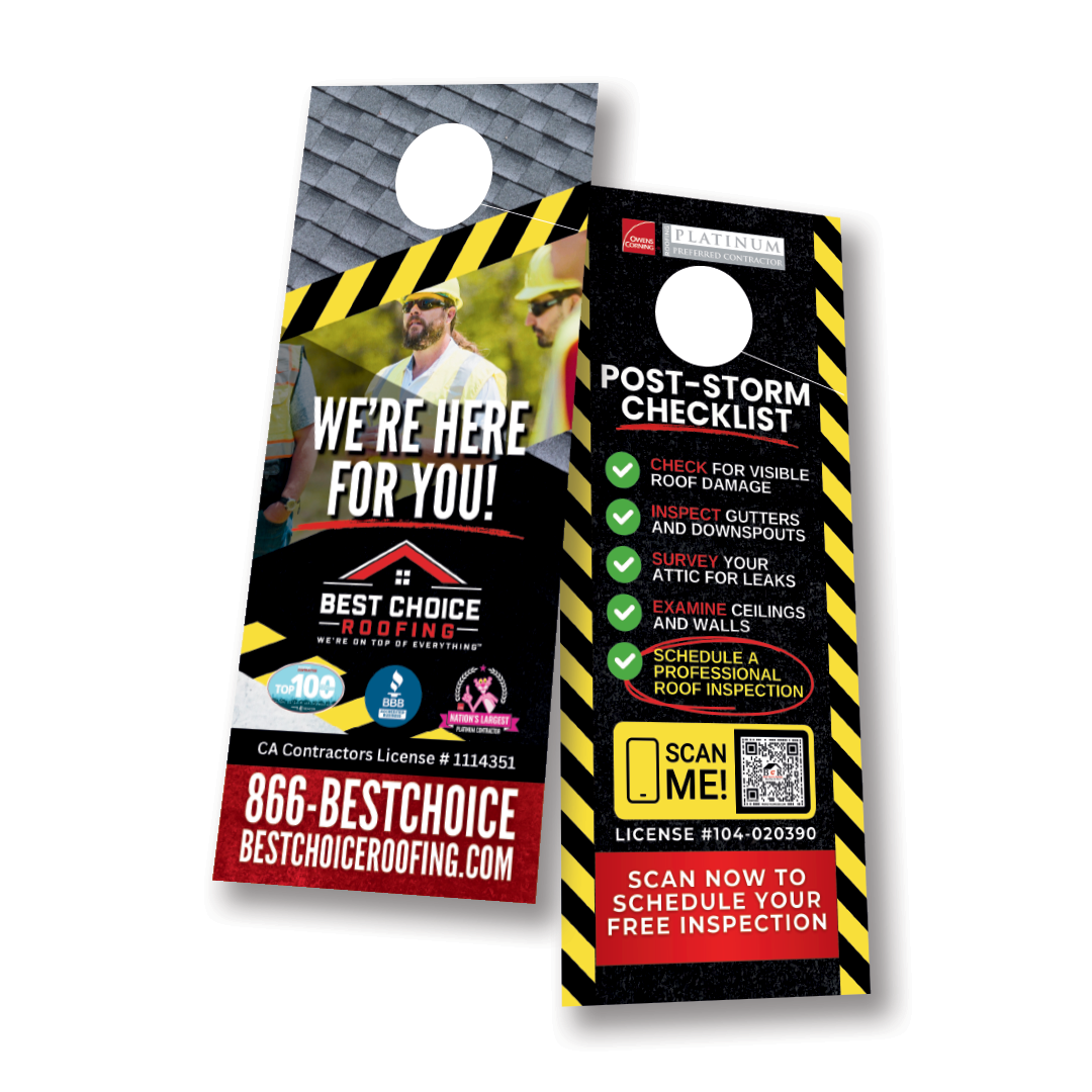 BCR Door Hangers are High- Quality and will stand out on any door! Hang your message in a spot that homeowners just can’t miss.